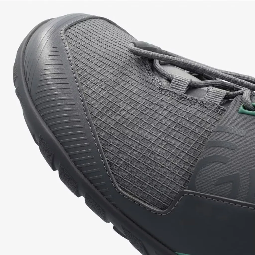 Zgornji del je iz funkcionalne kombinacije mrežastega poliestra in napa usnja, ki je vodoodbojna in hkrati zračna. Podloga pa iz zračnih mikrovlaken, ki odlično odvajajo vlago, uravnavajo temeraturo in poskrbijo za suha stopala.