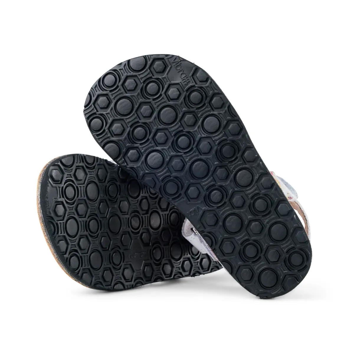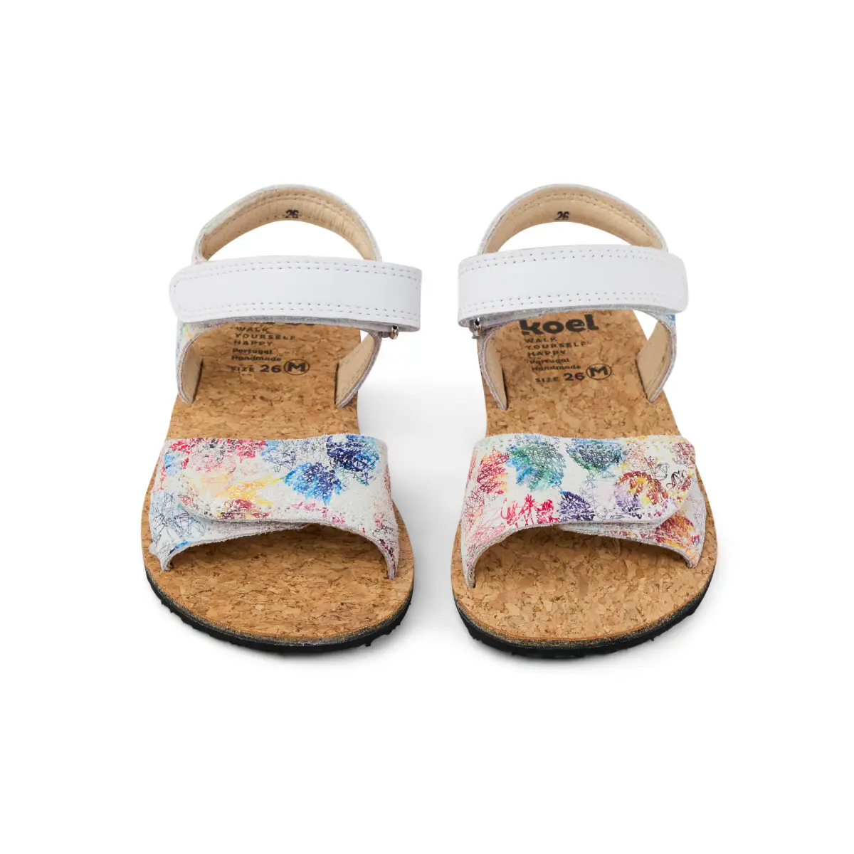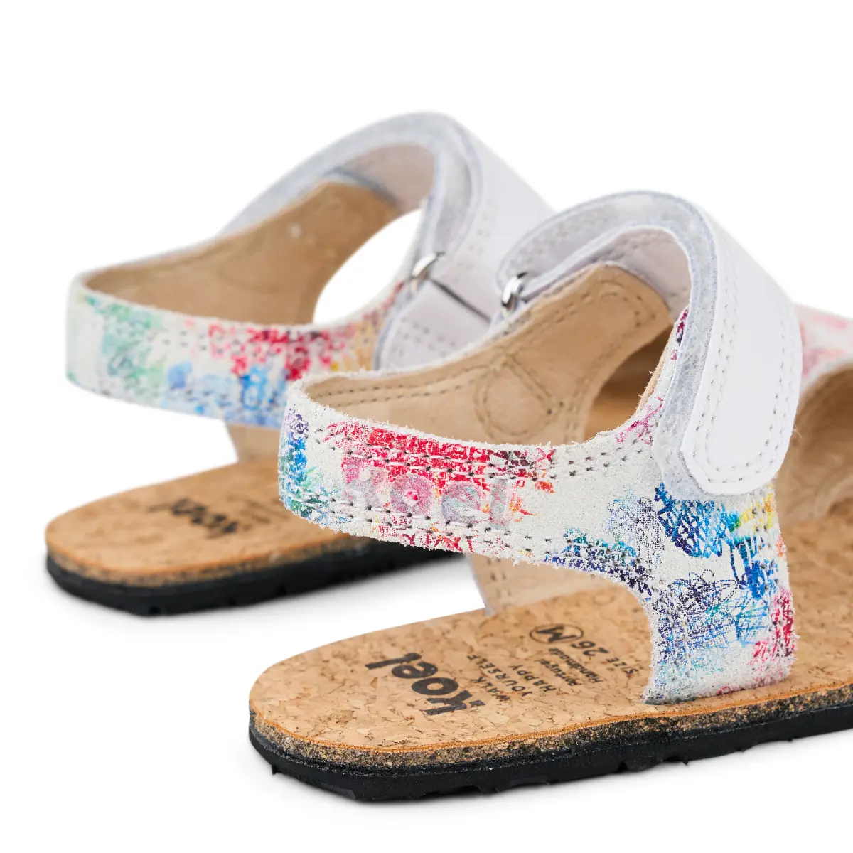Odprti otroški sandal iz mehkega usnja in podplatom iz plute.