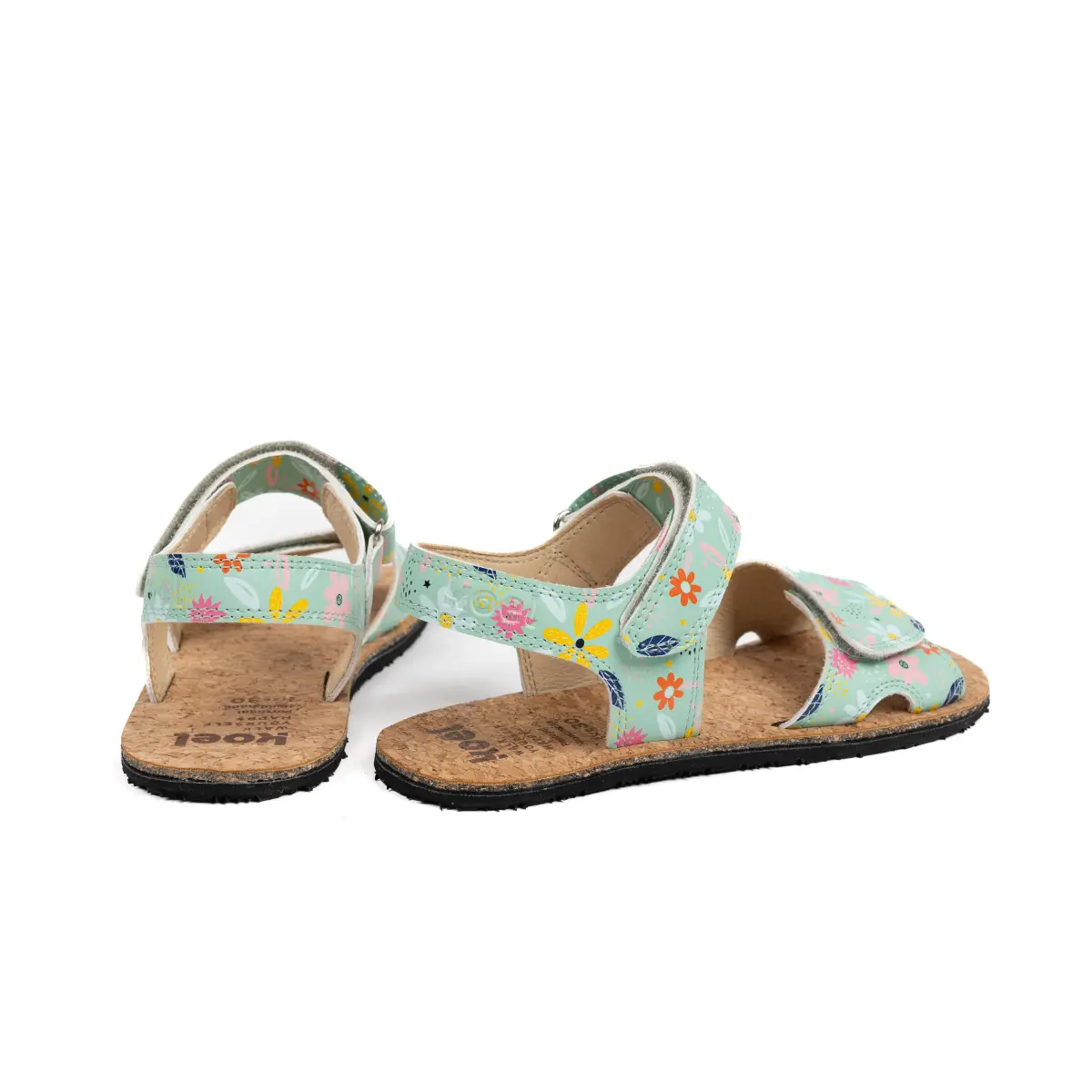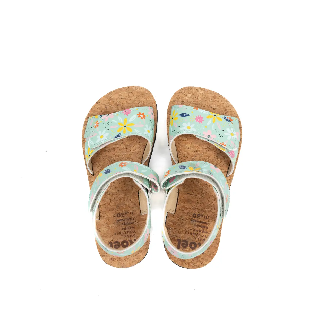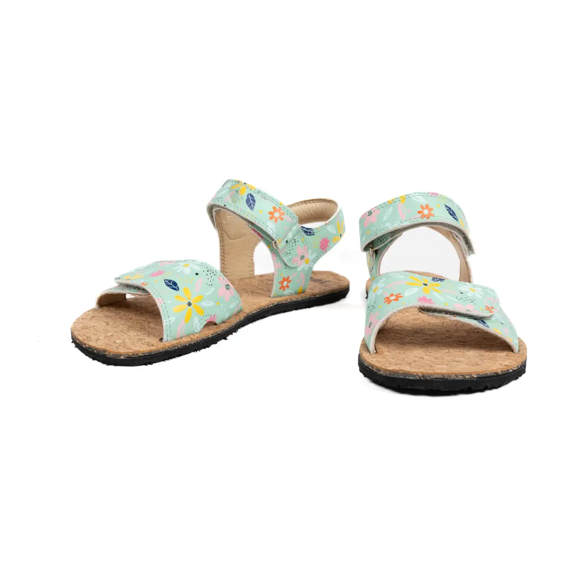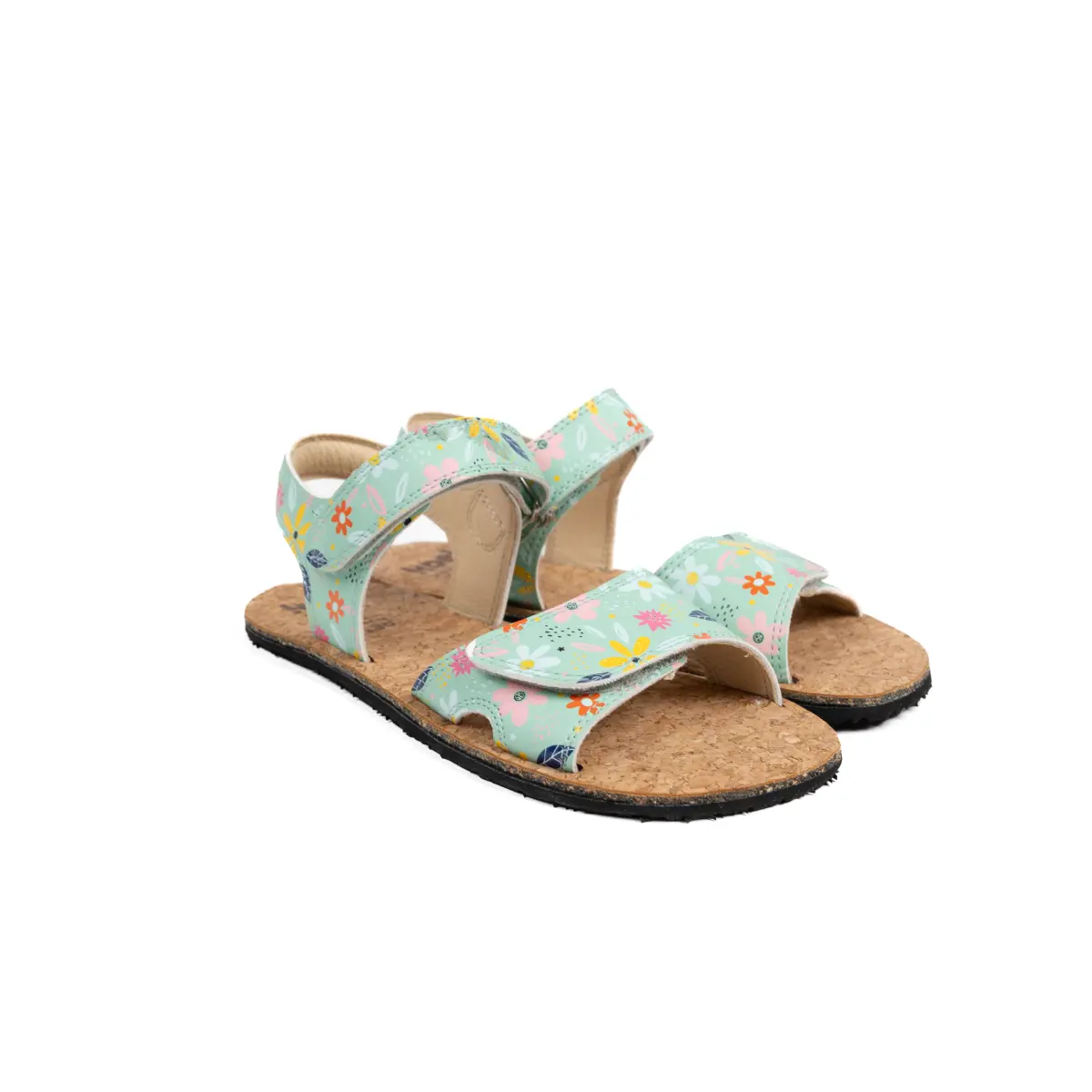 Odprti otroški sandal iz mehkega usnja in podplatom iz plute.