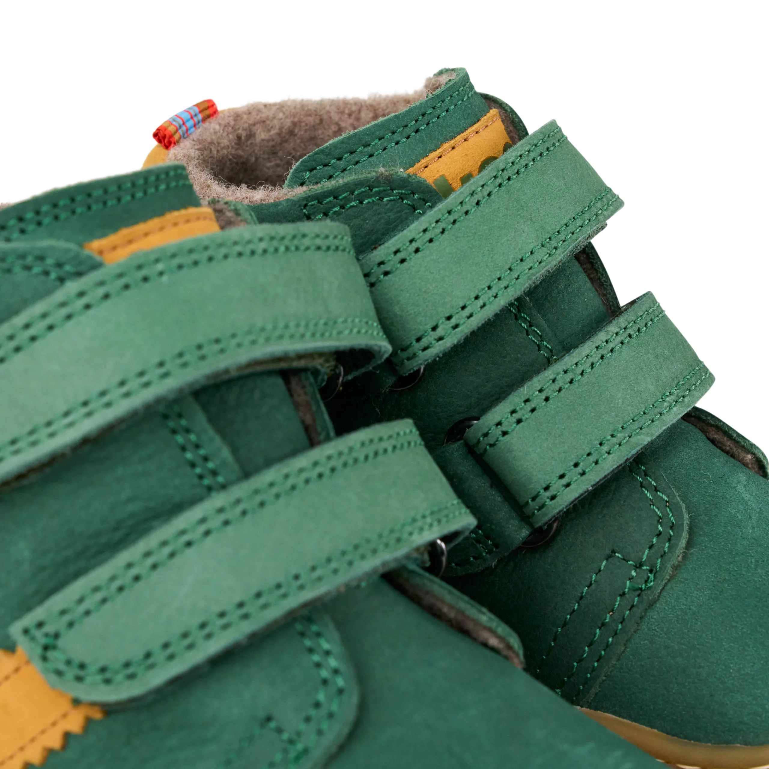 Podplati so na zgornji del čevlja prišiti, kar nudi boljšo vzdržljivost. Z velcro trakovi se enostavno obujejo in sezujejo ter prilagodijo stopalom kar otrokom omogoča samostojnost.