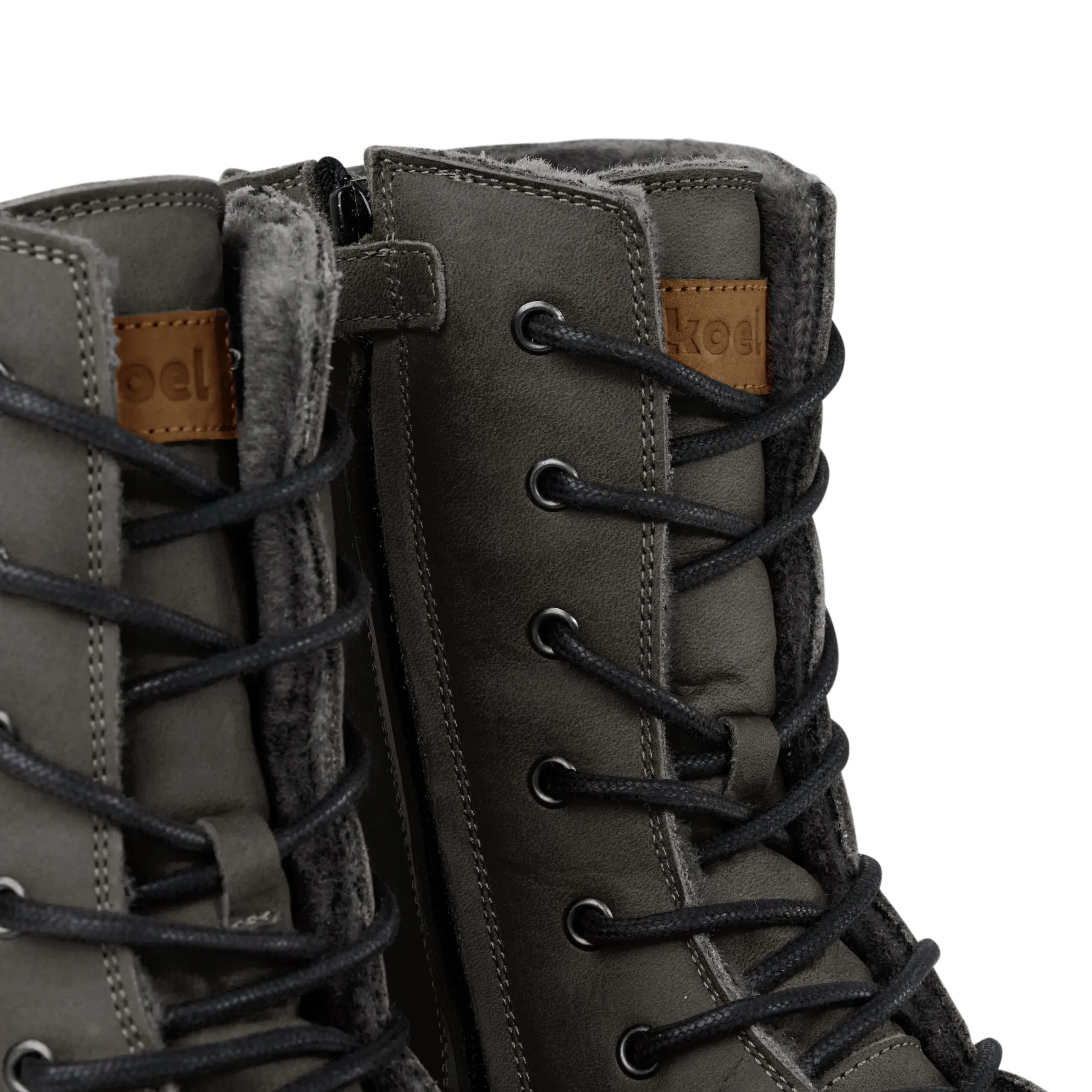 Debela volnena podloga bo poskrbela, da bodo stopala ostala topla tudi v mrzlih dneh. Zavezovanje na vezalke omogoča dobro fiksiranje čevljev, zadrga pa olajša obuvanje.