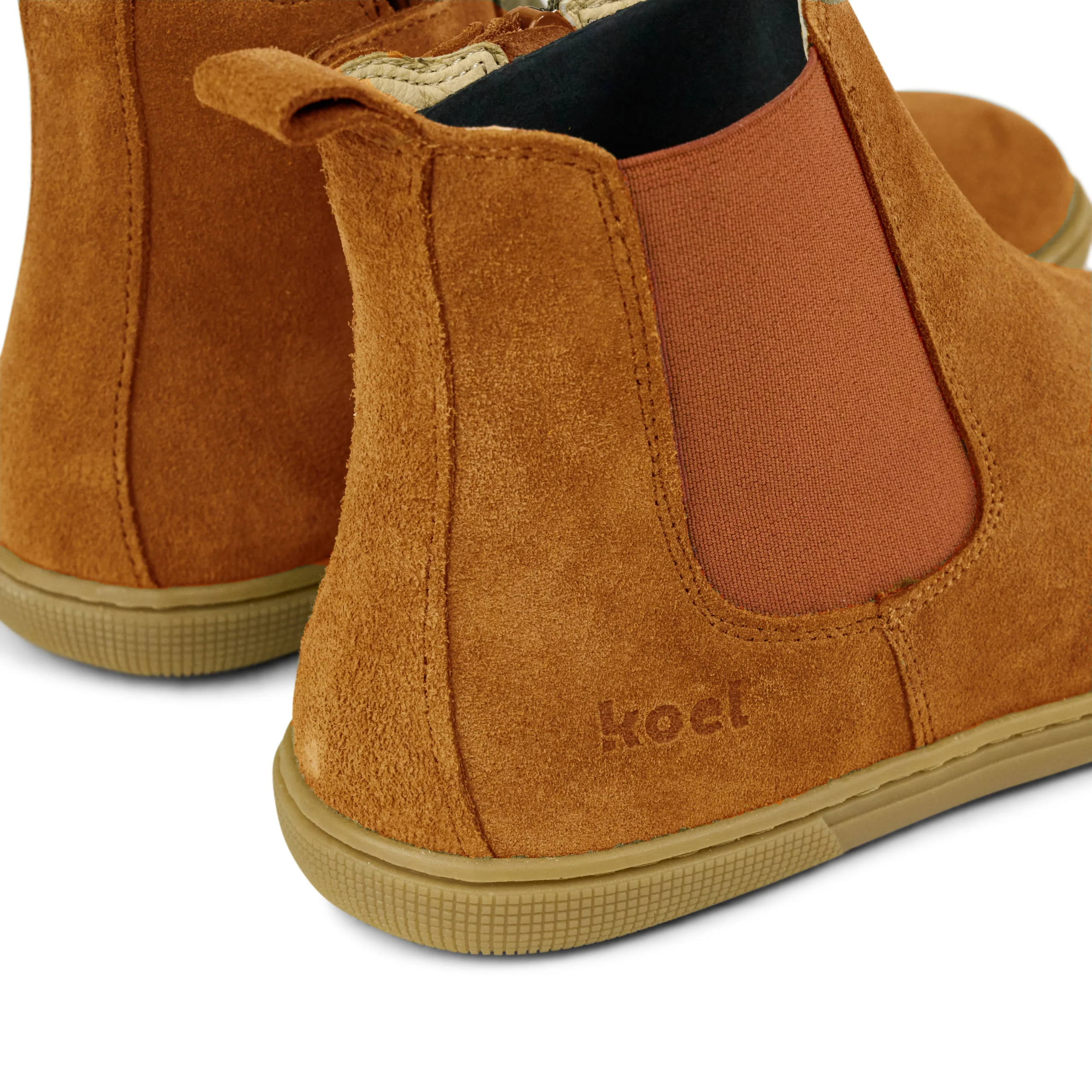 Klasični bosonogi Chelsea gležnarji v konjak barvi.