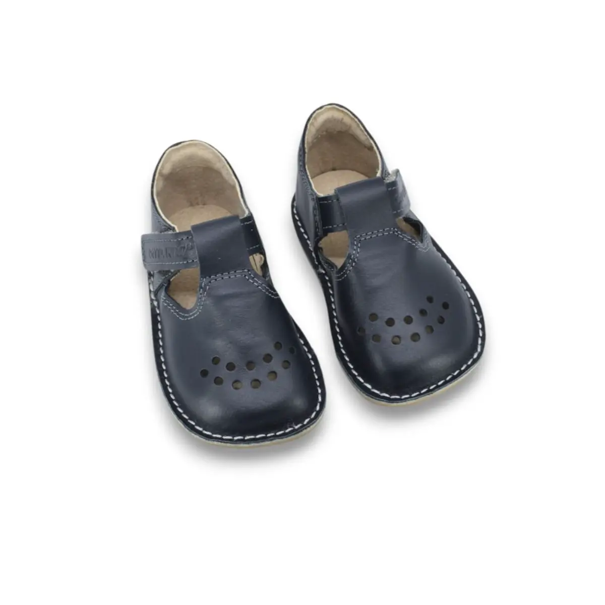 OmaKing copati so izdelani iz izjemno mehkega usnja in imajo širok anatomsko oblikovan prstni del, tako daje stopalo v naravnem položaju. Podplat je tanek in mehak, da spodbuja normalen razvoj mišic stopala. Čevlji se odlično prilegajo stopalom in imajo nastavljiv trak za zapenjanje.