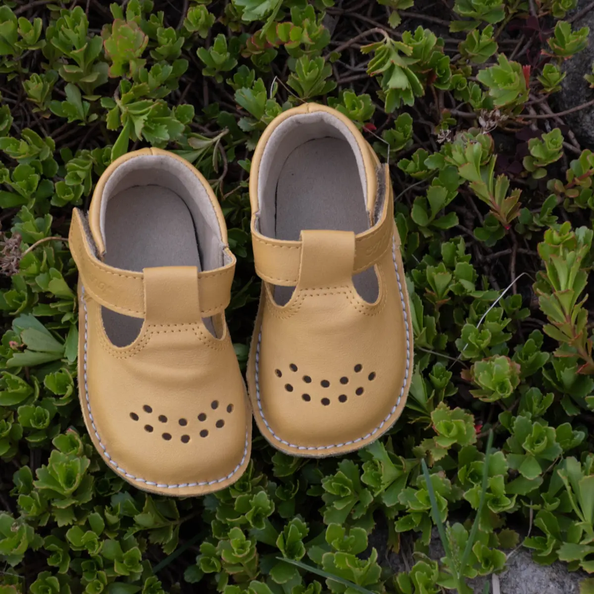 OmaKing copati so izdelani iz izjemno mehkega usnja in imajo širok anatomsko oblikovan prstni del, tako daje stopalo v naravnem položaju. Podplat je tanek in mehak, da spodbuja normalen razvoj mišic stopala. Čevlji se odlično prilegajo stopalom in imajo nastavljiv trak za zapenjanje.