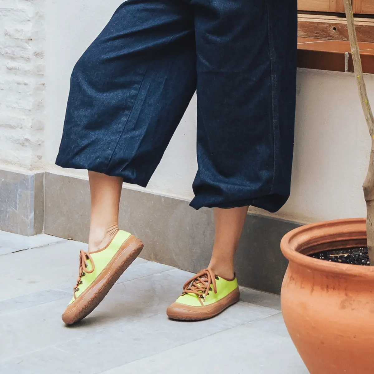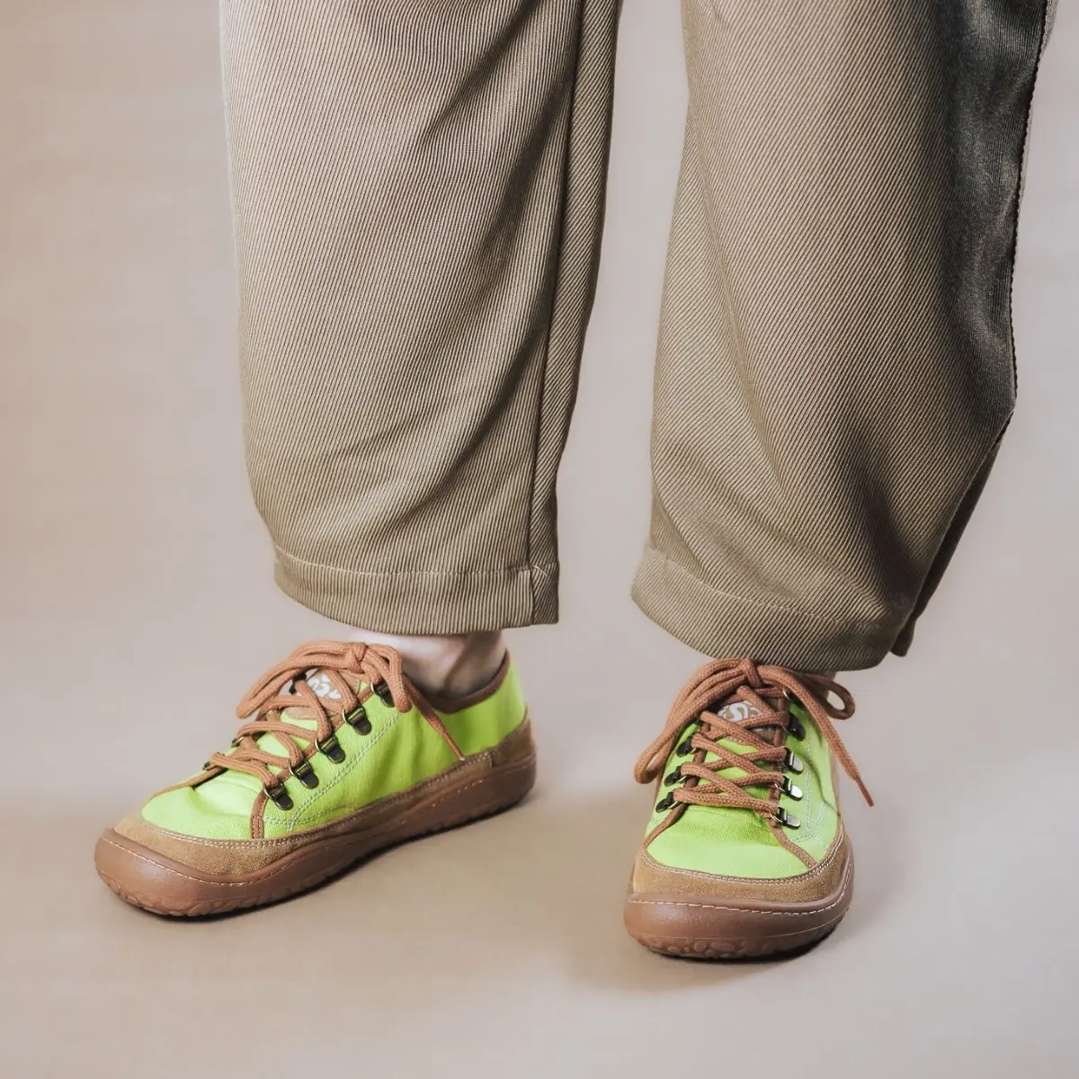 Bosonogi čevlji za vsakdan iz organskega bombaža v sveži zeleni barvi. tanek in prožen podplat odstranljiv vložek čevlji se z vezalkami fiksirajo in prilagodijo stopalom različnih volumnov primerni za srednje do široka stopala izdelani v Španiji veganski Matcha so vsestranski čevlji iz lahkega in zračnega organskega bombaža. Material je prijeten na koži in brez škodljivih kemikalij, tako da jih lahko nostite tudi na boso nogo. Čevlji nudijo odlično udobje in se z vezalkami odlično prilegajo različnim tipom stopal. Raven, prožen TPR podplat (4 mm) je izdelan iz rastlinskih olj. Vložki (4 mm) so odstranljivi in izdelani iz kokosovih vlaken so naravno vpojni in termoregulacijski. Idealni so za prehod na bosonogo obutev, prilagajanje velikosti ali zagotavljanje dodatne zaščite in udobja. Ko vložek odstranite, stopalo počiva neposredno na enakem organskem materialu, kot je uporabljen za podlogo in notranji del čevlja. Sambas the Bambas izpolnjujejo vse lastnosti bosonoge obutve in popolnoma posnemajo bosonogo hojo. Omogočajo prosto, udobno in naravno gibanje stopal brez kakršnihkoli omejitev.