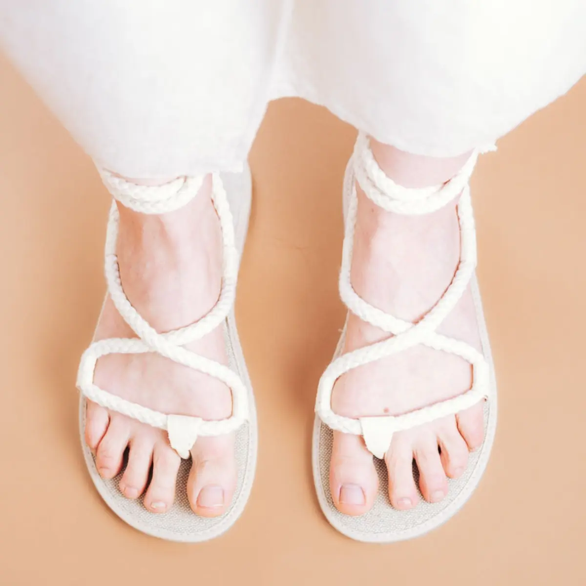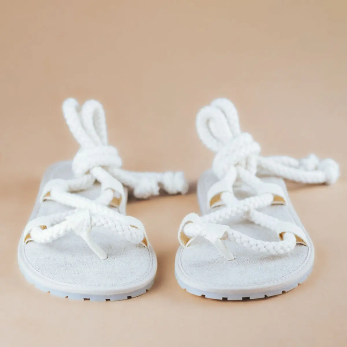 Lahki poletni sandali z laneno podlogo in vrvjo iz surovega bombaža.