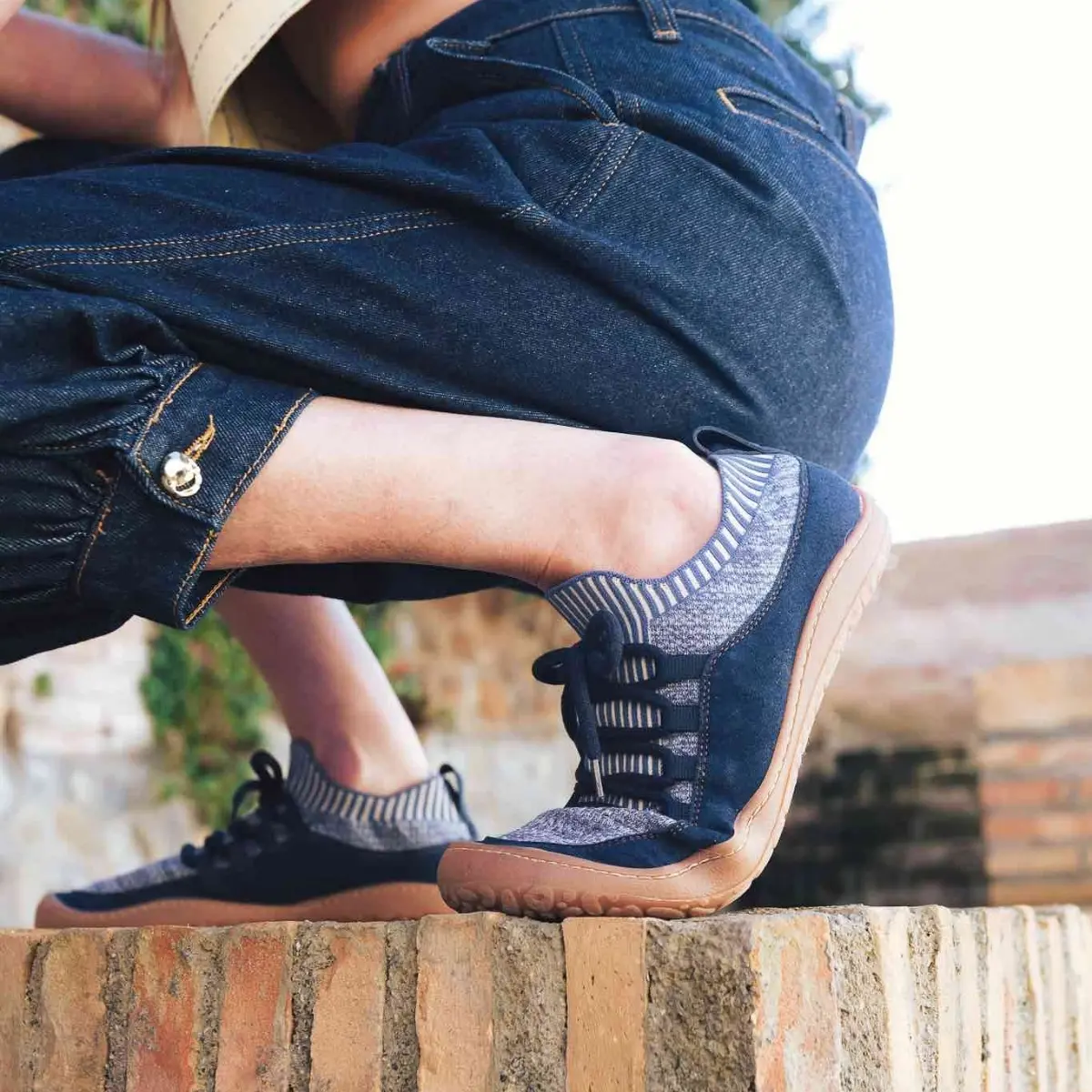 Essence Ocean so lahki in zračni bosonogi čevlji zasnovani za za vsakodnevno nošenje. tanek in prožen podplat odstranljiv vložek čevlji se z vezalkami fiksirajo in prilagodijo stopalom različnih volumnov primerni za srednje do široka stopala izdelani v Španiji veganski Zgornji del je iz mehke in elastične pletenine, ki spominja na nogavico, se prilega stopalu in njegovemu naravnemu gibanju. Pletenina je iz naravnih materialov, zaradi česar je zračna in idealna za celodnevno nošenje v toplih dneh. Primerni so za sprehode po mestu, lahke aktivnosti ali dolgotrajno stoječe delo v popolnem udobju, saj sp lahki in izjemo prijetni za nošenje, hkrati pa vsestranskega videza. Z vezalkami se odlično fiksirajo na stopala in hkrati prilagodijo različnim volumnom. Raven, prožen TPR podplat (4 mm) je izdelan iz rastlinskih olj. Vložki (4 mm) so odstranljivi in izdelani iz kokosovih vlaken so naravno vpojni in termoregulacijski. Idealni so za prehod na bosonogo obutev, prilagajanje velikosti ali zagotavljanje dodatne zaščite in udobja. Ko vložek odstranite, stopalo počiva neposredno na enakem organskem materialu, kot je uporabljen za podlogo in notranji del čevlja. Sambas the Bambas izpolnjujejo vse lastnosti bosonoge obutve in popolnoma posnemajo bosonogo hojo. Omogočajo prosto, udobno in naravno gibanje stopal brez kakršnihkoli omejitev.