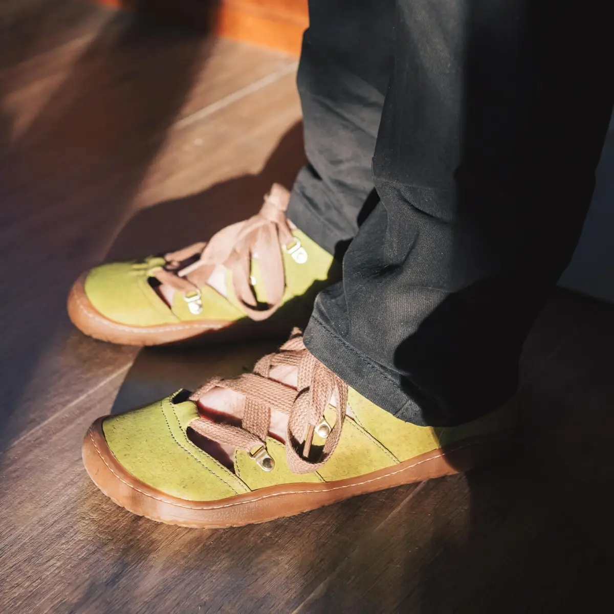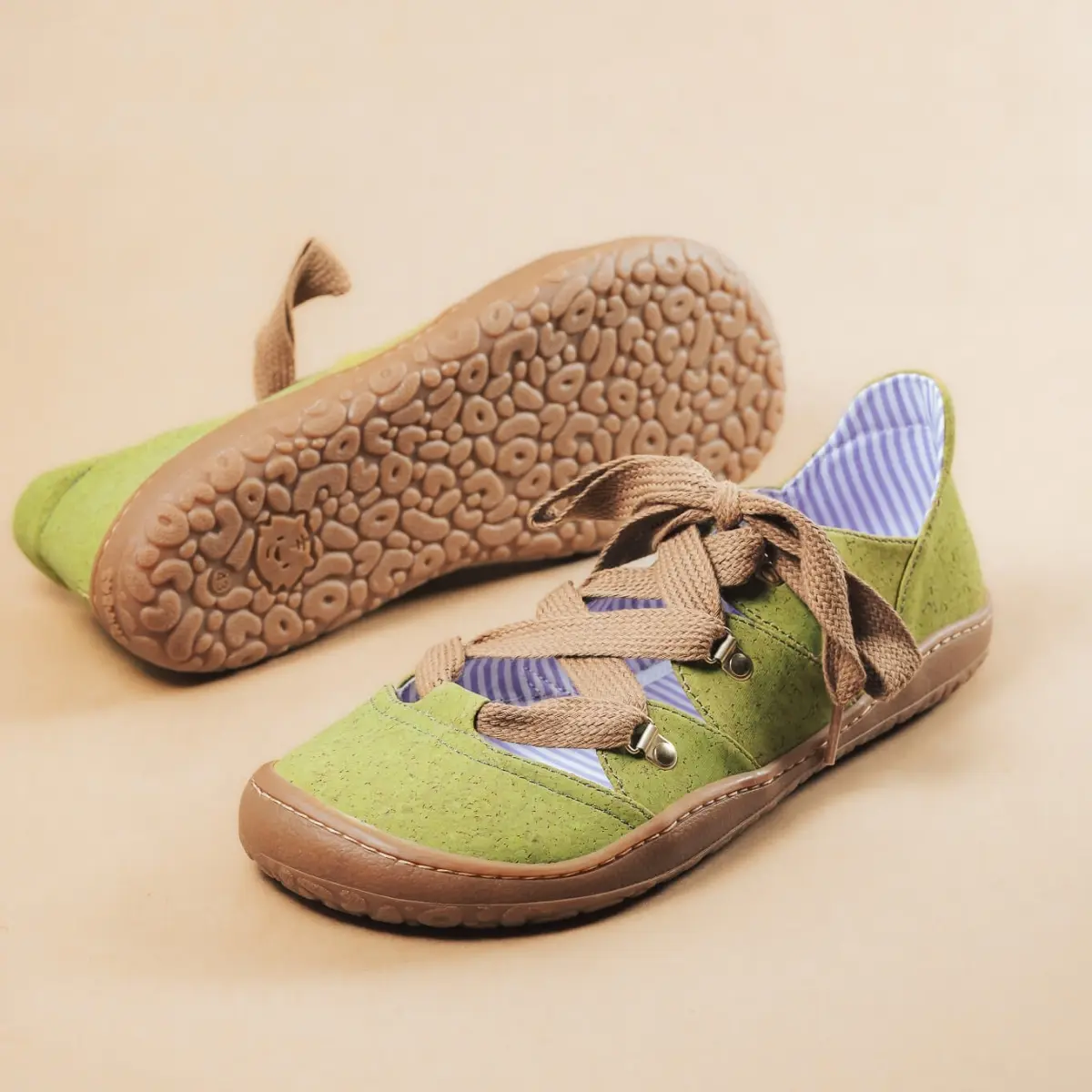 Bosonogi čevlji Sambalia v svežem zelenem odteku, ki bodo poskrbeli za lahkotnost in udobje. tanek in prožen podplat (4mm) odstranljiv vložek (4 mm) čevlji se z vezalkami dobro fiksirajo in prilagodijo stopalom različnih volumnov primerni za srednje do široka stopala izdelani v Španiji veganski Pluta je naraven material z izjemnimi lastnostmi: zelo odporna proti obrabi, naravno vodoodbojna in izredno trpežna. V notranjosti je podloga iz organskega bombaža, ki je prijetena na koži in brez škodljivih kemikalij, zaradi česar se lahko nosijo tudi na boso nogo. Bombažne vezalke omogočajo prilagodljivo prileganje, hkrati pa so čudovit detajl, ki čevlje še dodatno popestrijo. Raven, prožen TPR podplat (4 mm) je izdelan iz rastlinskih olj. Vložki (4 mm) so odstranljivi in izdelani iz kokosovih vlaken so naravno vpojni in termoregulacijski. Idealni so za prehod na bosonogo obutev, prilagajanje velikosti ali zagotavljanje dodatne zaščite in udobja. Ko vložek odstranite, stopalo počiva neposredno na enakem organskem materialu, kot je uporabljen za podlogo in notranji del čevlja. Sambas the Bambas izpolnjujejo vse lastnosti bosonoge obutve in popolnoma posnemajo bosonogo hojo. Omogočajo prosto, udobno in naravno gibanje stopal brez kakršnihkoli omejitev.