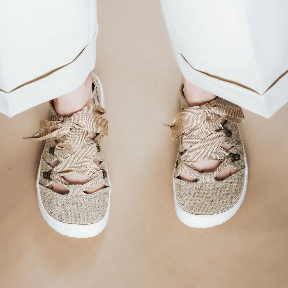 Bosonogi poletni čevlji iz konoplje, ki je zračna in termoregulacijska.